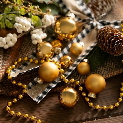 Набор стеклянных ёлочных шаров 17 шт. золото