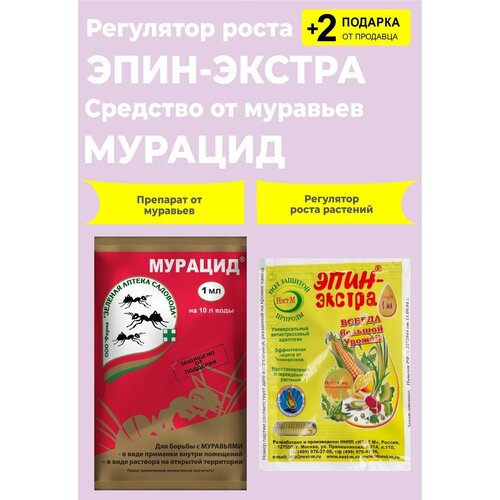 Средство от муравьев "Мурацид", 1 мл. + Регулятор "Эпин-Экстра", 1 мл. + 2 Подарка