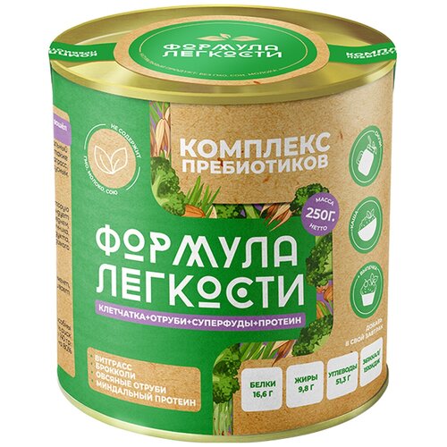Формула легкости Комплекс пребиотиков "Овсяные отруби + броколли + протеин миндальный + виграсс", 250 г, Формула легкости