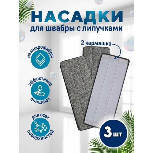 Универсальная насадка для швабры из микрофибры 3 шт. c двумя кармашками / Тряпка для плоской швабры 3 шт. c двумя кармашками