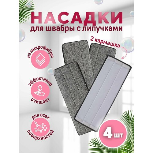 Универсальная насадка швабры из микрофибры 4 шт. c двумя кармашками / Тряпка для плоской швабры 4 шт. c двумя кармашками