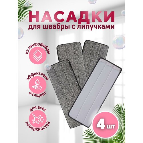 Универсальная насадка для швабры из микрофибры 4 штук / Тряпка для плоской швабры 4 штуки