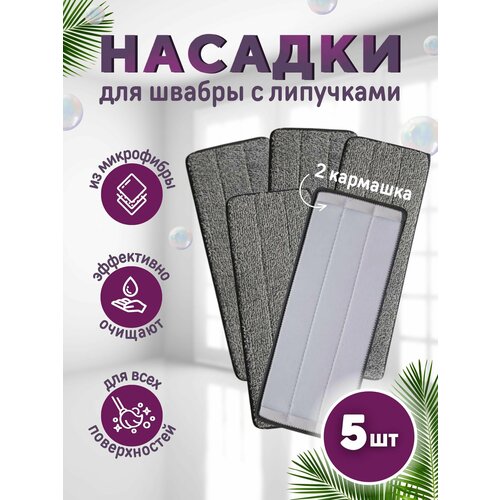 Универсальная насадка для швабры из микрофибры 5 шт. c двумя кармашками / Тряпка для плоской швабры 5 шт. c двумя кармашками