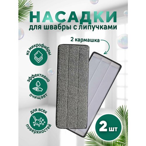 Универсальная насадка для швабры из микрофибры 2 шт. c двумя кармашками / Тряпка для плоской швабры 2 шт. c двумя кармашками