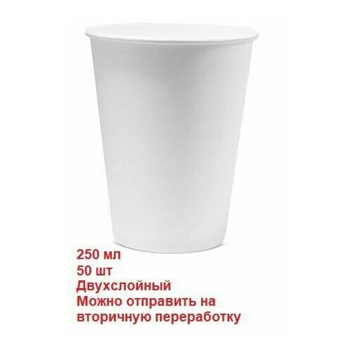 Стакан одноразовый бумажный "Белый" 250мл, упаковка 50 шт (для горячих и холодных напитков)
