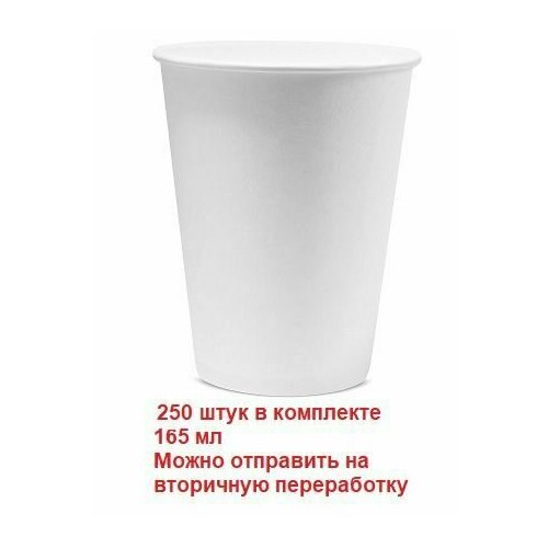 Стакан бумажный однослойный "Белый" 165мл, 250 шт в упаковке