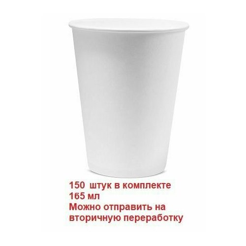 Стакан бумажный однослойный "Белый" 165мл, 150 шт в упаковке