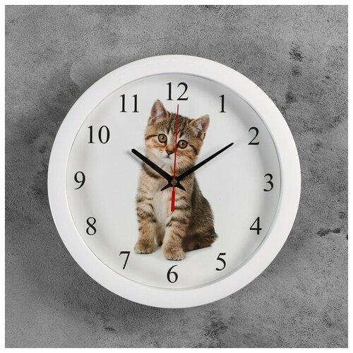 Часы настенные, серия: Детские, "Котенок", плавный ход, d-28 см (1шт.)