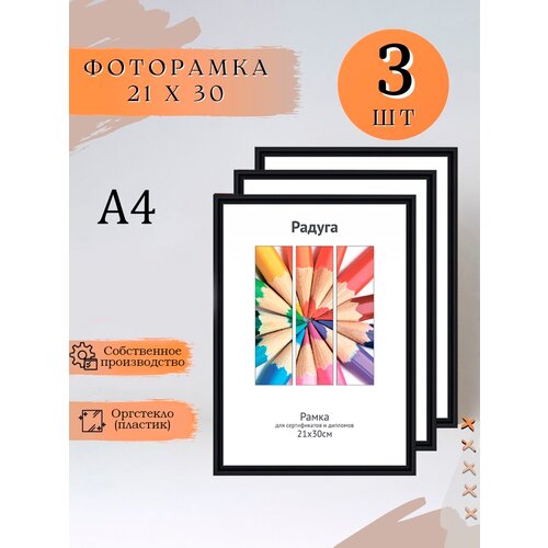 Фоторамки пластиковые 21х30 черные 3 шт, рамки для фото А4, рамки для фото на стену, рамки для грамот, дипломов