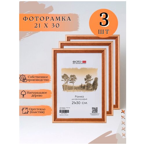 Фоторамки дерево 21х30 см, набор 3 шт, рамки для фото А4, фоторамки на стену, рамки для дипломов, для грамот