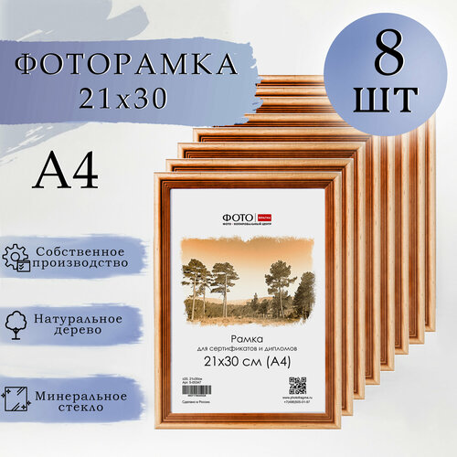 Фоторамки дерево 21х30 см, набор 8 шт, рамки для фото А4, фоторамки на стену, рамки для дипломов, для грамот