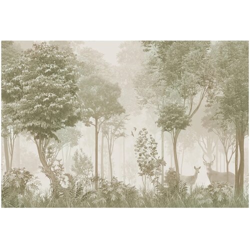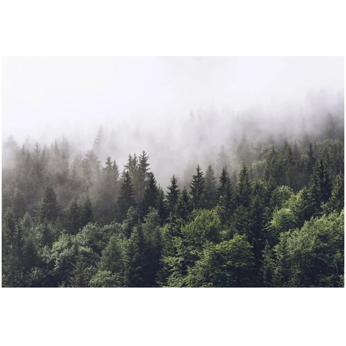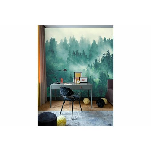 Фотообои винил на флизелиновой основе Fotooboikin Лес в тумане max 4х2.7м 195 г/кв. м 1 шт., зелeный