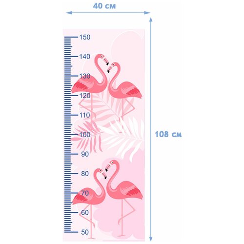 Ростомер наклейка на стену / Ростомер детский на стену / Линейка для измерения роста / Ростомер Fotooboikin "Фламинго" 40х108 см