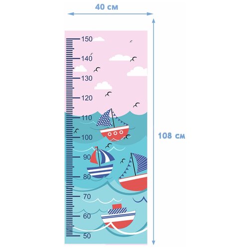 Ростомер наклейка на стену / Ростомер детский на стену / Линейка для измерения роста / Ростомер Fotooboikin "Кораблики" 40х108 см
