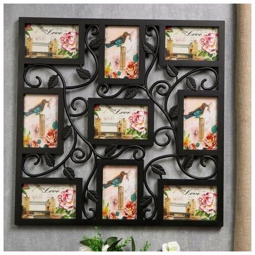 Фоторамка пластик на 9 фото 10х15 см "Вьюнок" чёрная 53х53 см (1шт.)