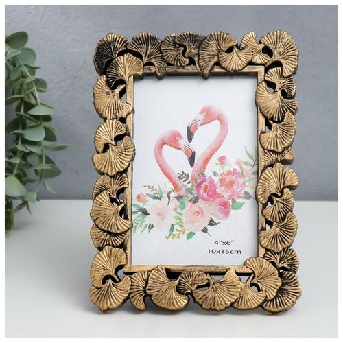 Фоторамка пластик 10х15 см "Листья-веер" тёмное золото 20х14,5 см (1шт.)