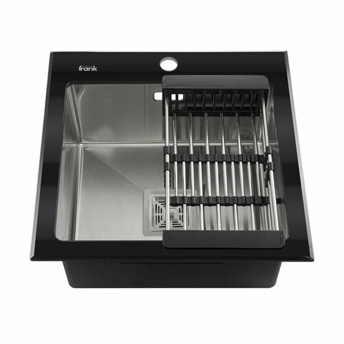 Мойка кухонная из нержавеющей стали FRANK professional черное стекло 50х50