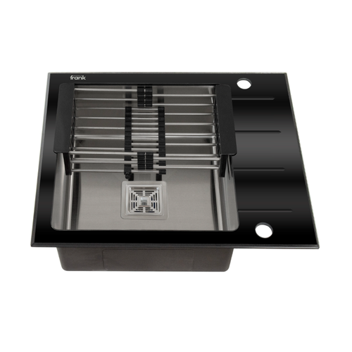 Мойка врезная FRANK PROFI 50х50 см чёрное стекло + нержавеющая сталь № 201, толщина стекла 8 мм