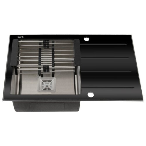 Мойка врезная FRANK PROFI - 78х50 см универсальная (левая +правая), чёрное стекло + нержавеющая сталь № 201