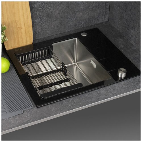 Мойка врезная 60х50 см, универсальная (левая +правая), чёрное стекло + нержавеющая сталь 201