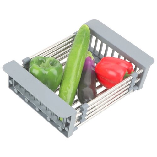 Корзина коландер для кухонных моек раздвижная универсальная FRANK PROFI 75890 серая