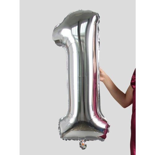 Цифра «1» серебро 40 дюймов, 102 см с гелием