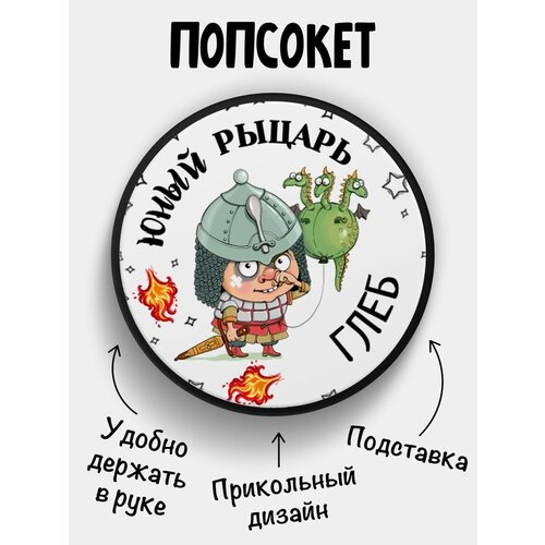 Попсокет для телефона черный цвет Юный Рыцарь Глеб