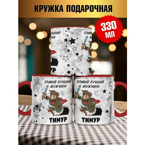 Кружка красный цвет с надписью Самый лучший мужчина Тимур