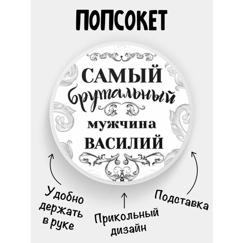 Попсокет для телефона белый цвет Самый брутальный мужчина Василий