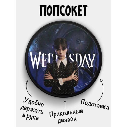 Держатель (Popsocket) для телефона черный цвет с надписью Венсдей Уэнсдей Аддамс Adams Wednesday