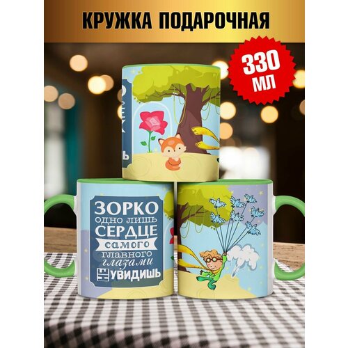 Кружка зеленый цвет с надписью Зорко Одно Лишь Сердце