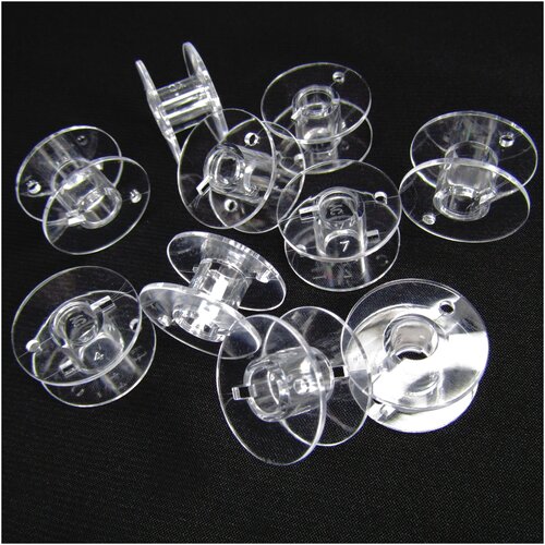 Шпульки стандартные пластиковые прозрачные для бытовой швейной машины Singer, Janome, Brother, катушка шпулька для ниток, набор шпулек, 10 шт