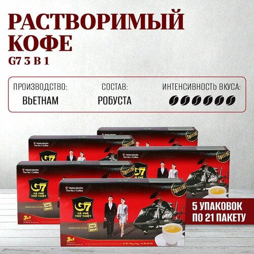 G7 Instant Coffee - это вьетнамская марка кофе, выпускающая одни из самых популярных растворимых кофейных напитков в стране. Основанная в 2002 году, G7 Instant Coffee быстро завоевала популярность благодаря своему качеству и уникальному вкусу. Они используют только лучшие сорта арабики, выращенные на высокогорных плантациях Вьетнама. Компания также известна своими инновационными технологиями производства, которые сохраняют аромат и вкус кофе, делая его максимально приятным для потребителя. В настоящее время G7 Instant Coffee экспортируется в более чем 60 стран мира, что подтверждает ее глобальную популярность.