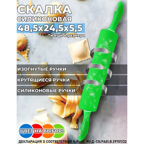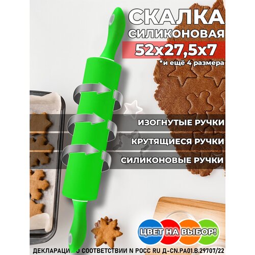 Кухонная скалка для теста силиконовая с крутящимися ручками, профессиональная, зеленая, средняя