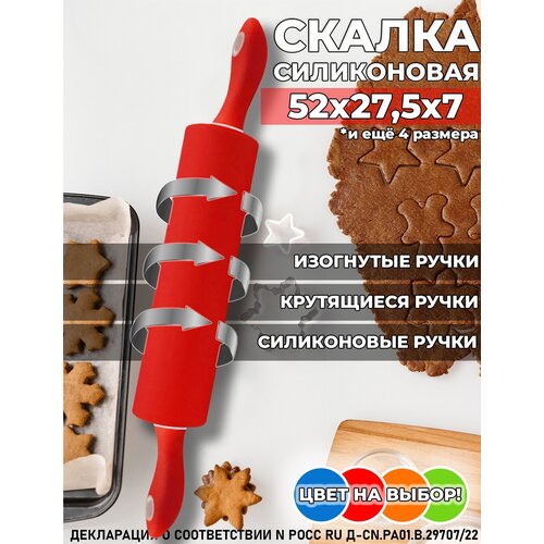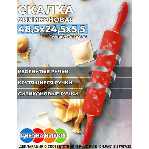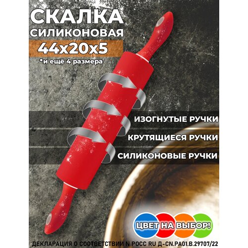 Кухонная скалка для теста силиконовая с крутящимися ручками, профессиональная, красная, средняя