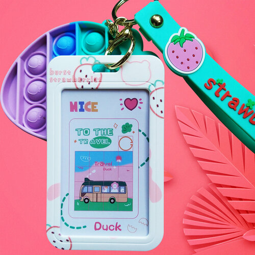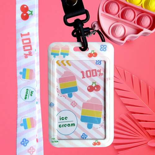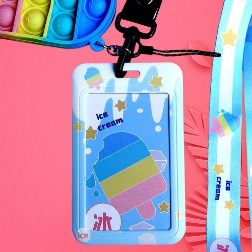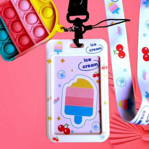 Вертикальный пластиковый бейдж с лентой и подвеской поп ит, полосатый