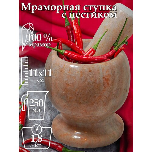 Ступка с пестиком толкушкой из мрамора GABI Home, 11 см. Розовый мрамор.