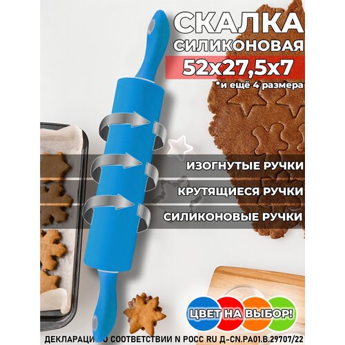 Кухонная скалка для теста силиконовая с крутящимися ручками, профессиональная, голубая