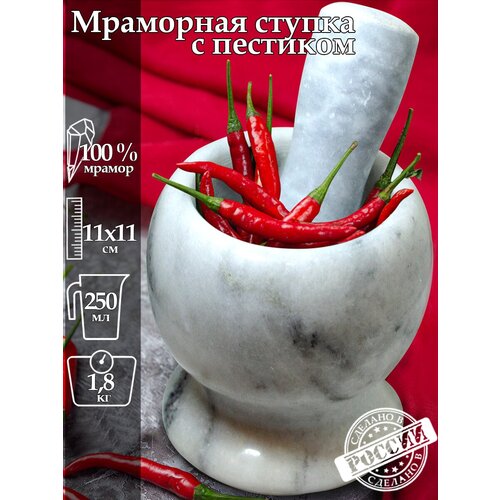 Ступка с пестиком толкушкой из мрамора GABI Home, 11 см. Белый мрамор.