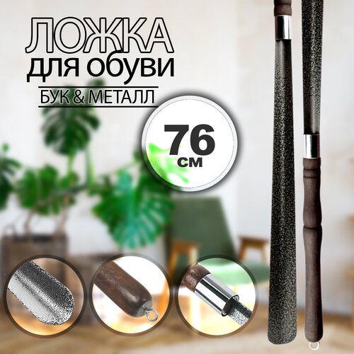 Ложка для обуви металлическая 76 см с деревянной ручкой длинная, большой рожок для обуви, бук, металл