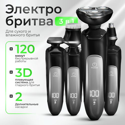 Электробритва мужская для лица беспроводная, электрическая бритва 3 в 1, триммер для носа и ушей, машинка для стрижки волос, бритва для бороды и усов