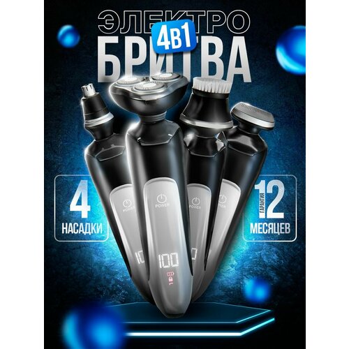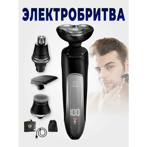 Электробритва мужская для лица беспроводная, электрическая бритва 4 в 1, триммер для носа и ушей, машинка для стрижки волос, шейвер для бороды и усов