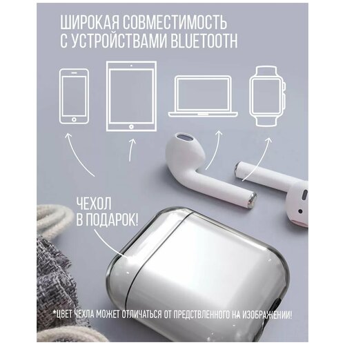 Беспроводные наушники для Айфона и Андроида T20 , гарнитура с шумоподавлением, белые с микрофоном, чехол в подарок