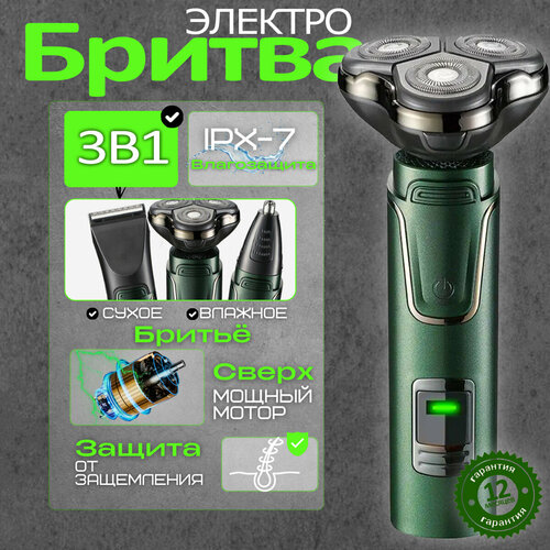 Электробритва мужская беспроводная 3 в 1, триммер для носа, ушей, машинка для стрижки волос, шейвер для бороды, усов