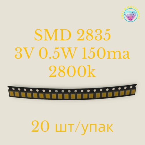 20штук Комплект светодиод smd 2835 3V 0.3W 2800-3000К