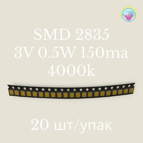 20штук Комплект светодиод smd 2835 3V 0.3W 4000-4500k