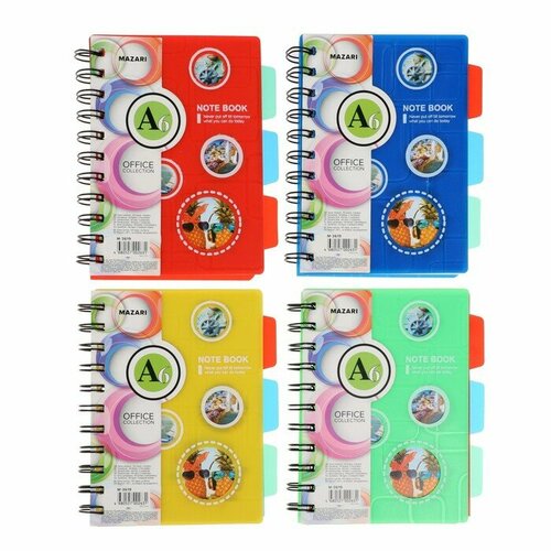 Блокнот, А6, 100 л, двойная спираль, 3 разд, обложка пластик, микс