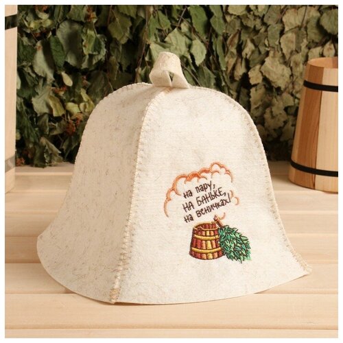 Шапка для бани "На пару, на баньке, на веничках" полушерсть