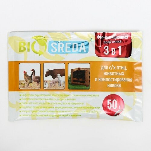 Ферментационная подстилка "BIOSREDA" 3 в 1, для с/х животных, птиц и компостирования навоза