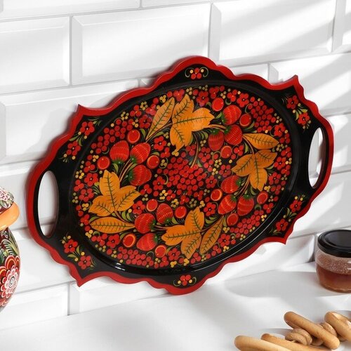 Поднос «Хохлома», овал, ручная роспись, 41х25см